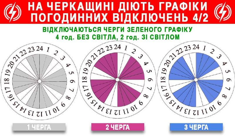 ❗️дві черги будуть відключатися одночасно на чотири години, а одна – включатися на дві години.