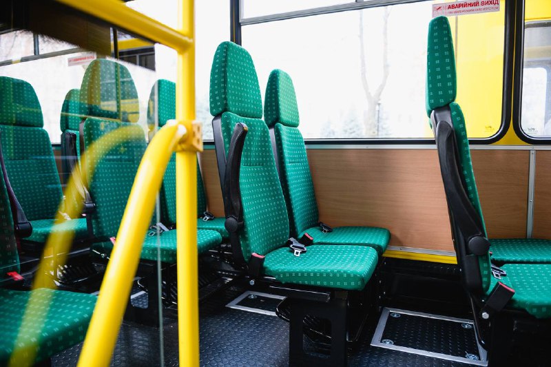 Це вітчизняні «Еталони» на 30 місць. Вони з м’якими сидіннями, пасками безпеки та поличками для дитячих рюкзаків.