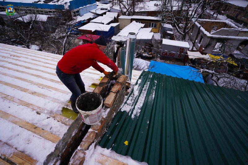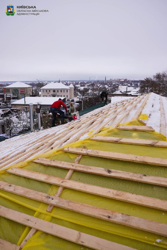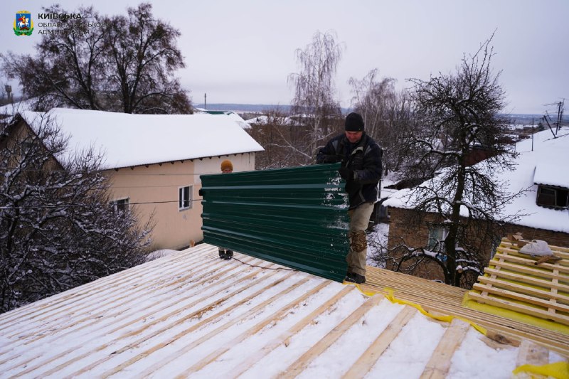 У Макарові відновлюємо пошкоджені окупантами багатоповерхівки. На одній із них на вулиці Гагаріна ремонтують дах