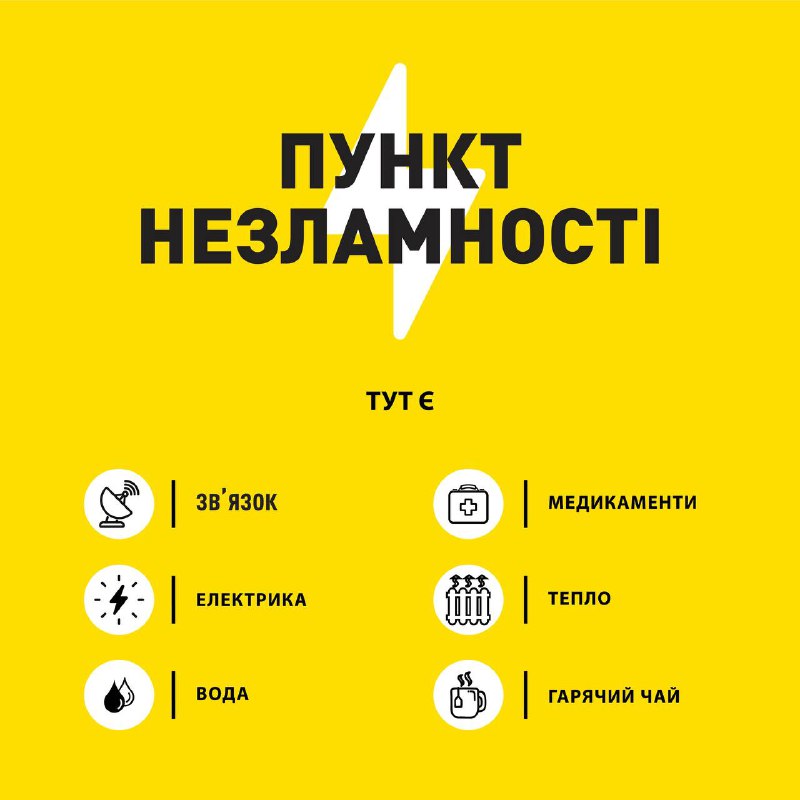 В усіх громадах працюють пункти незламності. Їх вже понад 260. Там можна зігрітися, підзарядити гаджети, випити чаю 5.12.2022, Понеділок | 15:32 Автор допису: Голова Дніпропетровської обласної військової адміністрації В усіх громадах працюють пункти незламності. Їх вже понад 260. Там можна зігрітися, підзарядити гаджети, випити чаю. Пункти зі світлом, теплом та водою. Їх адреси тут: 📌 Дніпровський район📌 Кам'янський район📌 Новомосковський район📌 Павлоградський район📌 Синельниківський район📌 Криворізький район 📌 Нікопольський район Місцезнаходження пунктів і на інтерактивній карті nezlamnist.gov.ua. Вона постійно оновлюється. Допомагаємо один одному. Вистоїмо та переможемо! #russiaisaterroriststate Джерело Друк / PDF