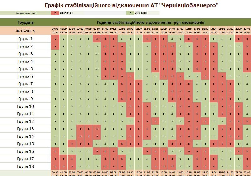 ⚡️ Друзі, вашій увазі графік стабілізаційних відключень електропостачання у Чернівецькій області у вівторок, 6 грудня 6.12.2022, Вівторок | 7:38 Автор допису: Голова Чернівецької обласної військової адміністрації ⚡️ Друзі, вашій увазі графік стабілізаційних відключень електропостачання у Чернівецькій області у вівторок, 6 грудня. Знайти свою вулицю чи населений пункт можна за посиланням через пошук на сайті внизу сторінки. ➡️ http://oblenergo.cv.ua/shutdowns/ Джерело Друк / PDF