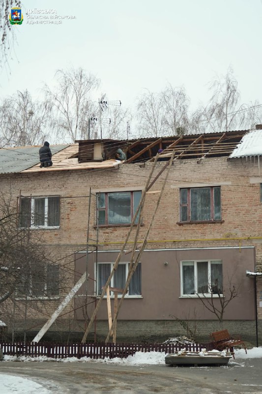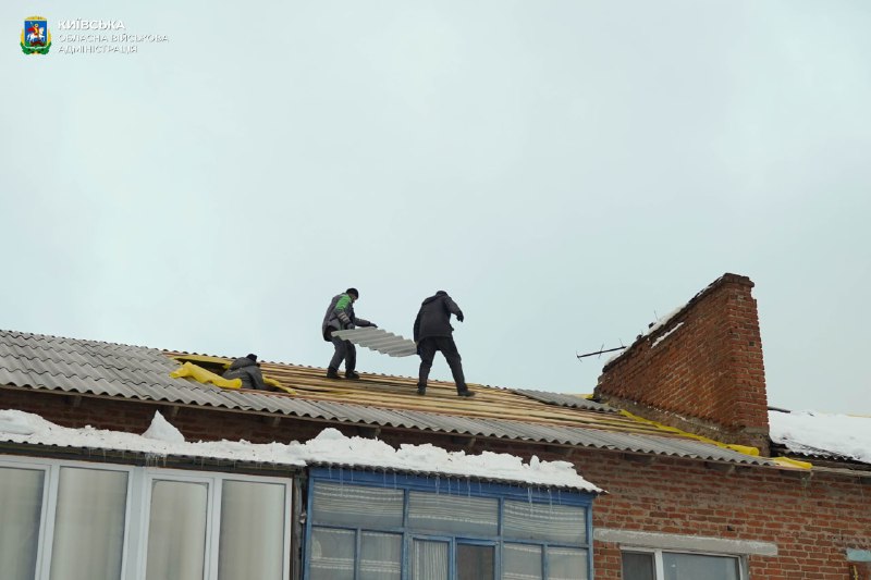 Попри сніжну та холодну погоду, у Бородянці на вулиці Миру відновлюємо багатоповерхівки.