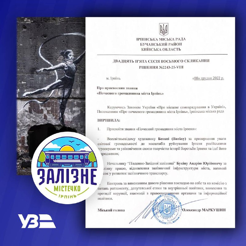 Художник Бенксі та залізничник Андрій Букін стали почесними громадянами Ірпеня.