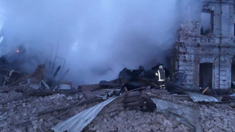 Вночі окупанти завдали ракетного удару системою С-300 по місту Куп’янськ. Ракета влучила в двоповерхову адмінбудівлю, внаслідок чого сталася пожежа на площі 400 м.кв. Будівля повністю зруйнована. Обійшлося без потерпілих.