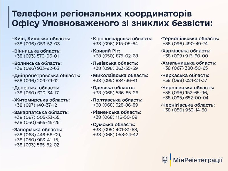 ⚡️Працюють регіональні офіси Уповноваженого зі зниклих безвісти