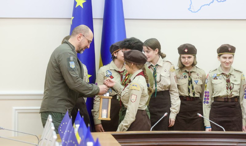 У будівлі Уряду засяяв Вифлеємський вогонь, який передали сьогодні представники «Пласту». Світло з Вифлеєму упродовж століть перед різдвяними святами несло людям мир, злагоду й тепло. Для українців цей вогонь набув особливого значення, оскільки став символом перемоги світла над темрявою, добра над злом. Нехай Вифлеємський вогонь веде нас до перемоги. Слава Україні!