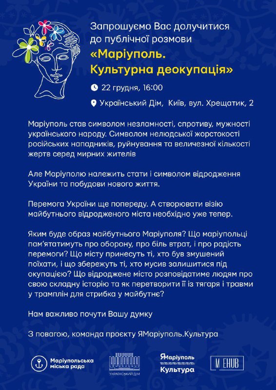☝🏻У Києві відбудеться публічна розмова «Маріуполь. Культурна деокупація» ⭐️ До обговорення запрошують всіх охочих.