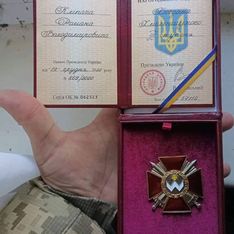 У Бахмуті вінничанина Романа Кліпача Президент України нагородив орденом Богдана Хмельницького ІІІ ступеня: «За особисту мужність і самовіддані дії, виявлені у захисті державного суверенітету та територіальної цілісності України, вірність військовій присязі».