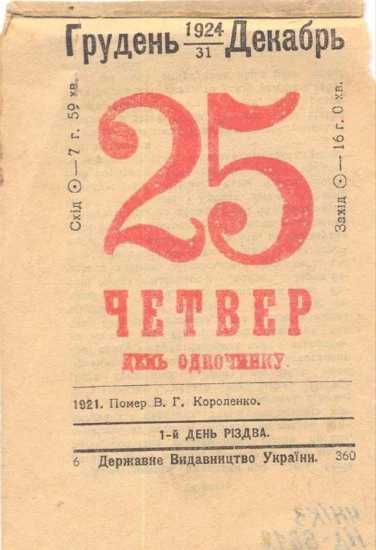 Ще у далекому 1924 році сьогодні був “день одпочику”, бо Україна святкувала 🌟 1-й день Різдва! 25.12.2022, Неділя | 14:09 Автор допису: Голова Хмельницької обласної військової адміністрації Ще у далекому 1924 році сьогодні був "день одпочику", бо Україна святкувала 🌟 1-й день Різдва! Джерело Друк / PDF