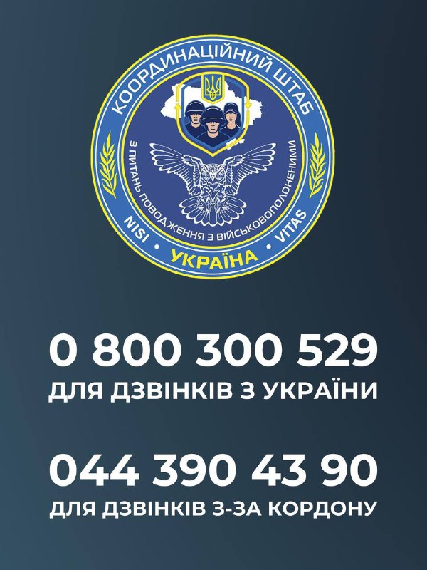 🔔 Координаційний штаб з питань поводження з військовополоненими відкриває новий телефонний номер консультаційної лінії