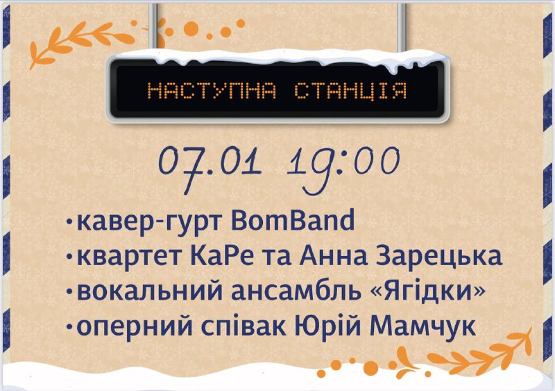 🎺Завтра, 7 січня, тут відбудеться святковий концерт українських гуртів та виконавців.