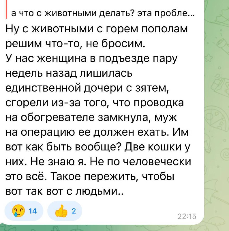 У той же час люди пишуть, що втрачають близьких через постійні пожежі. Адже у місті немає нормального електропостачання. Тож відбуваються замикання, і квартири огортає полум‘я.