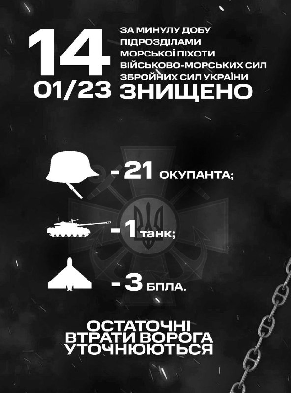 Військові частини та підрозділи Командування морської піхоти Військово-Морських Сил Збройних Сил України, які входять до складу угруповань продовжували виконувати завдання щодо відсічі повномасштабної збройної агресії російської федерації. Минулої доби, 13 грудня, морські піхотинці знищили 3 БПЛА та 18 окупантів.