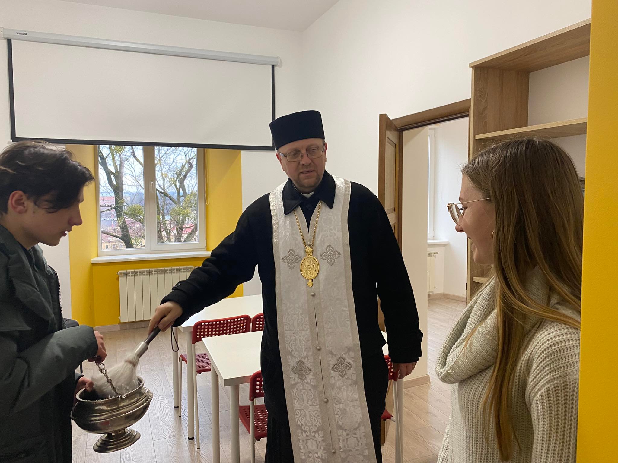 Сьогодні, у понеділок 23 січня 2022 року, єпископ-помічник Львівської Архиєпархії владика Володимир йорданською водою освятив адміністративні приміщення Курії Львівської Архиєпахії.