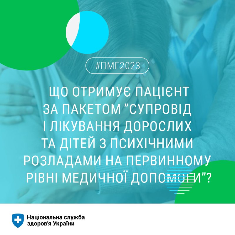 Повний обсяг медичної допомоги за пакетом можна переглянути на сайті НСЗУ у розділі “Вимоги ПМГ 2023” – “ 33 Супровід і лікування дорослих та дітей з психічними розладами на первинному рівні медичної допомоги”. https://cutt.ly/E2R0hq8