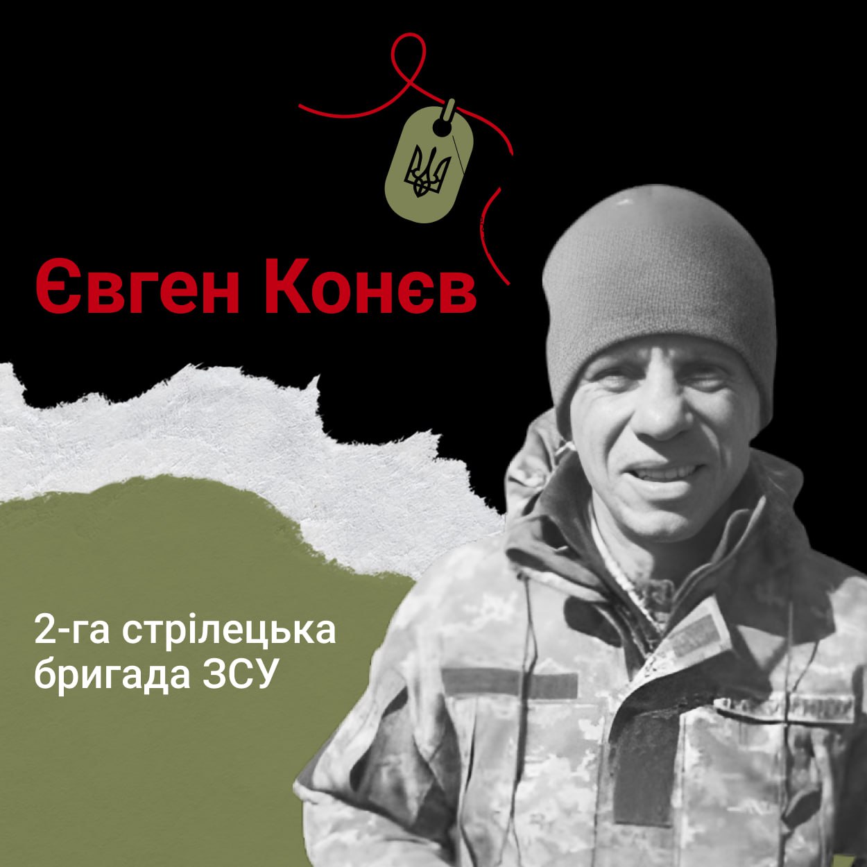52-річний солдат Євген Конєв, позивний Маршал, загинув 1 квітня 2022 року під час виконання бойового завдання на Донеччині. Біля села Роздольне захисник потрапив під ворожий мінометний обстріл. Це був перший день перебування підрозділу Євгена на нових позиціях.