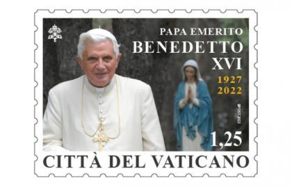 Першу марку, присвячену пам’яті папи-емерита Бенедикта XVI, Ватикан випустив у вівторок, 31 січня, рівно через місяць після його смерті. На марці зображено фотографію Бенедикта XVI, зроблену в 2009 році під час його літньої відпустки в долині Аоста, та роки його життя: 1927-2022.