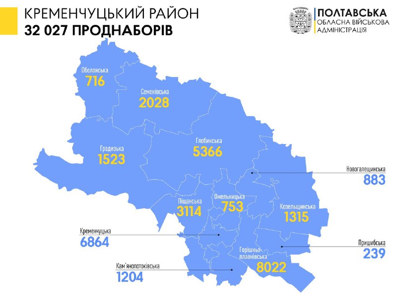 понад 32 тисячі продуктових наборів роздали ВПО, які проживають у громадах Кременчуцького району. В інфографіці – статистика по кожній.