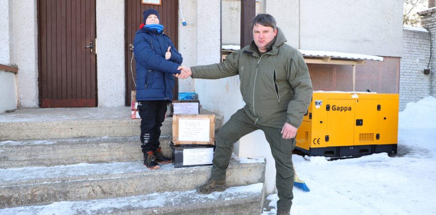 Сьогодні Максимко з батьком передав понад 50 окопних свічок, які сам виготовляв та три акумулятори потужністю 100 та 140 кВт начальнику Яворівської РВА Ярославу Коминському для захисників нашої королівської бригади.