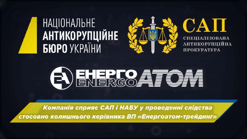 🔶 Енергоатом: Компанія сприяє САП і НАБУ у проведенні слідства стосовно колишнього керівника ВП «Енергоатом-трейдинг»