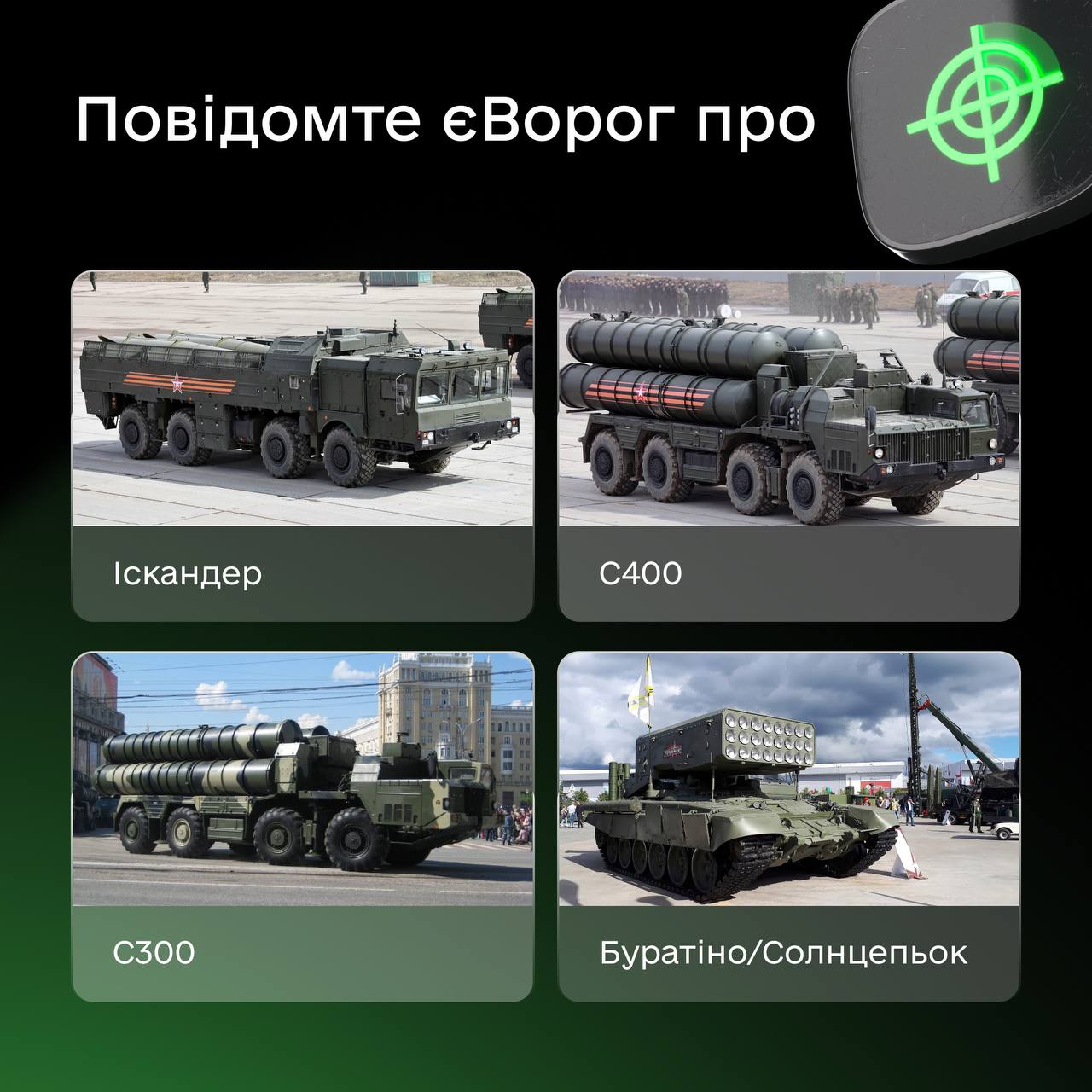 Побачили С400, С300, Буратіно/Cолнцепьок чи Іскандер? Повідомте в чатбот єВорог