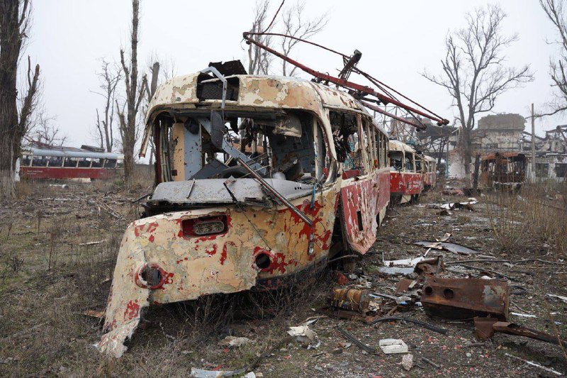 ☝️росіяни ще у березні цілеспрямовано знищили транспорт у Маріуполі. Саме через це евакуювати жителів комунальними автобусами стало неможливо. Зокрема, було знищене і трамвайне депо разом з транспортними засобами. Понад 80% трамваїв не підлягають відновленню. Крім того, окупанти зруйнували 95% контактної мережі. Тож чергові обіцянки роблять лише для пропагандистського телебачення, де показують про «відновлення життя» у місті, а не те, як вони вбили найперспектівнійше місто України, перетворивши життя людей на пекло та виживання.