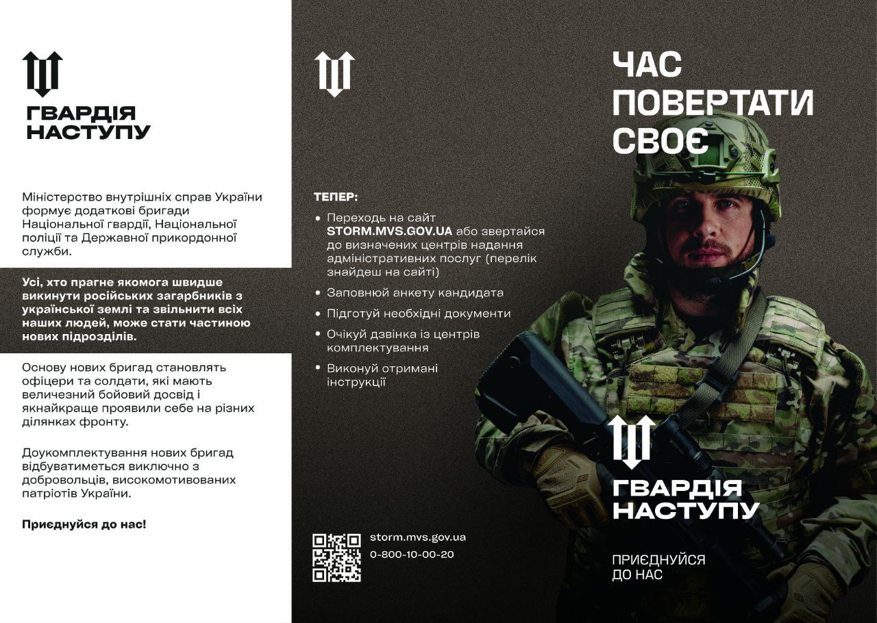 Долучитися до «Гвардії Наступу» можна заповнивши заявку на сайті storm.mvs.gov.ua або звернувшись до ЦНАПу щодня з 9 до 19.