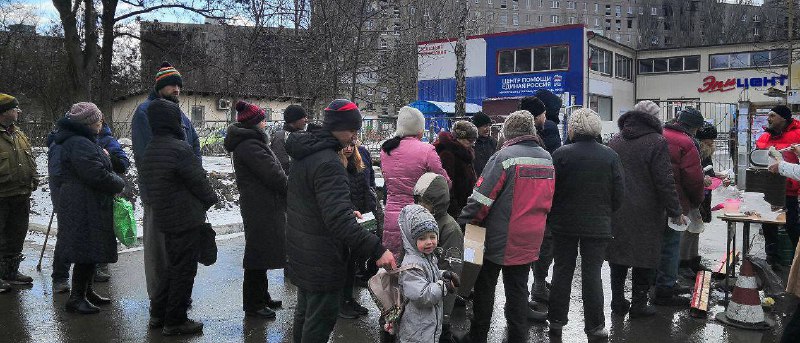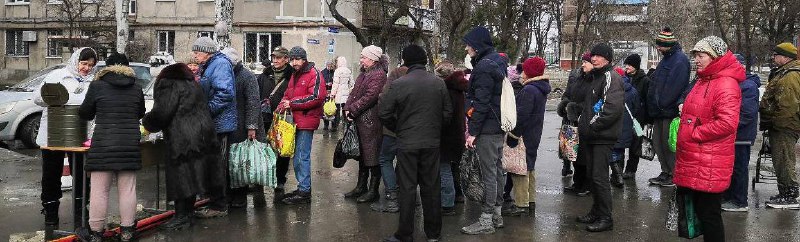 😢В окупованому місті жителі продовжують виживати. росіяни та колабораційна "влада" так і не змогли вирішити найнеобхіднішу проблему – забезпечення людей їжею. Не кажучи вже про ремонти будинків та відновлення інфраструктури. Тож окупанти "відкупаються" та роздають гарячу кашу. І розповідають про "покращення життя".
