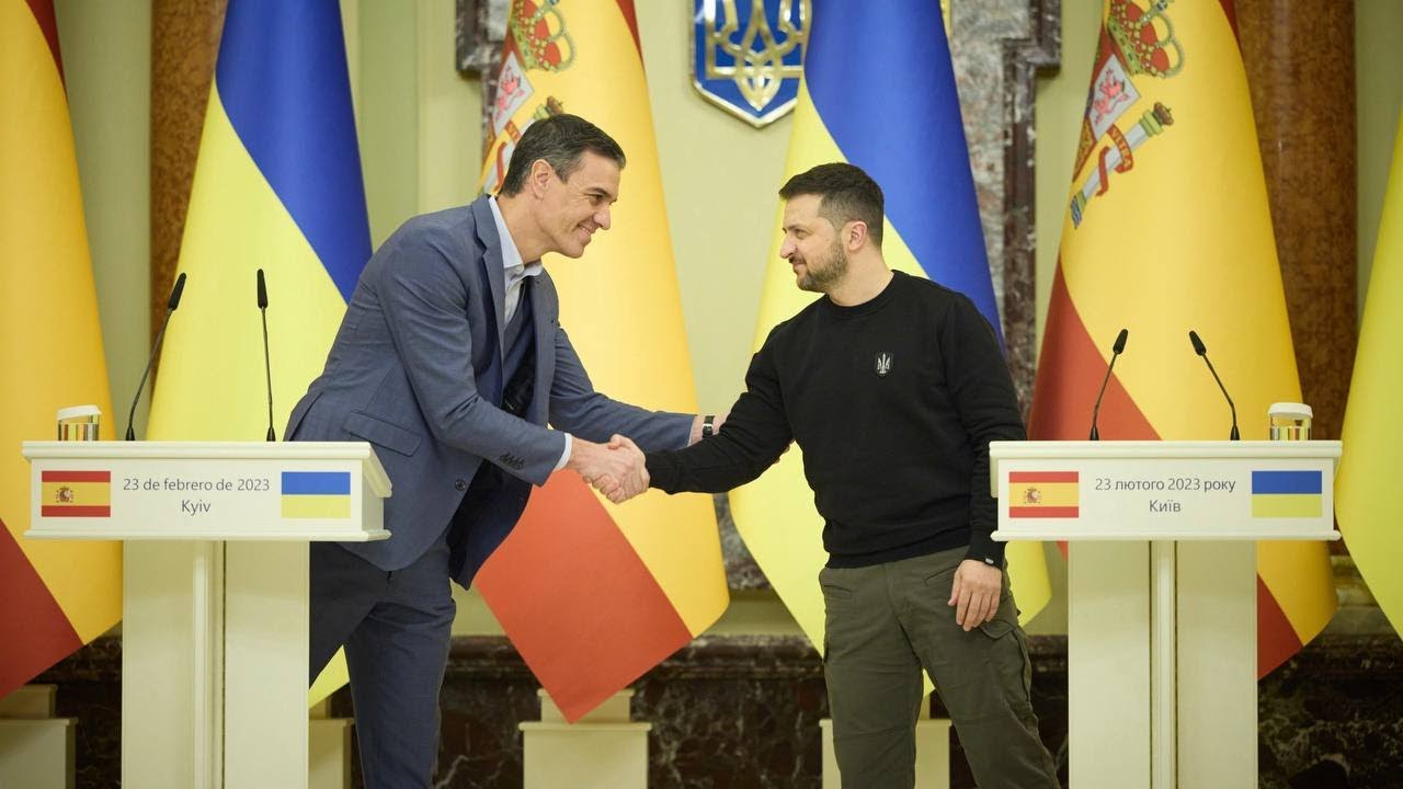 Володимир Зеленський і Прем’єр-міністр Королівства Іспанія Педро Санчес зробили заяви для ЗМІ за підсумками зустрічі в Києві.