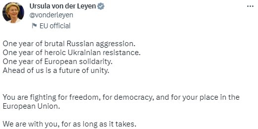«Рік жорстокої російської агресії. Рік героїчного українського опору. Рік європейської солідарності. Попереду нас чекає майбутнє єдності.