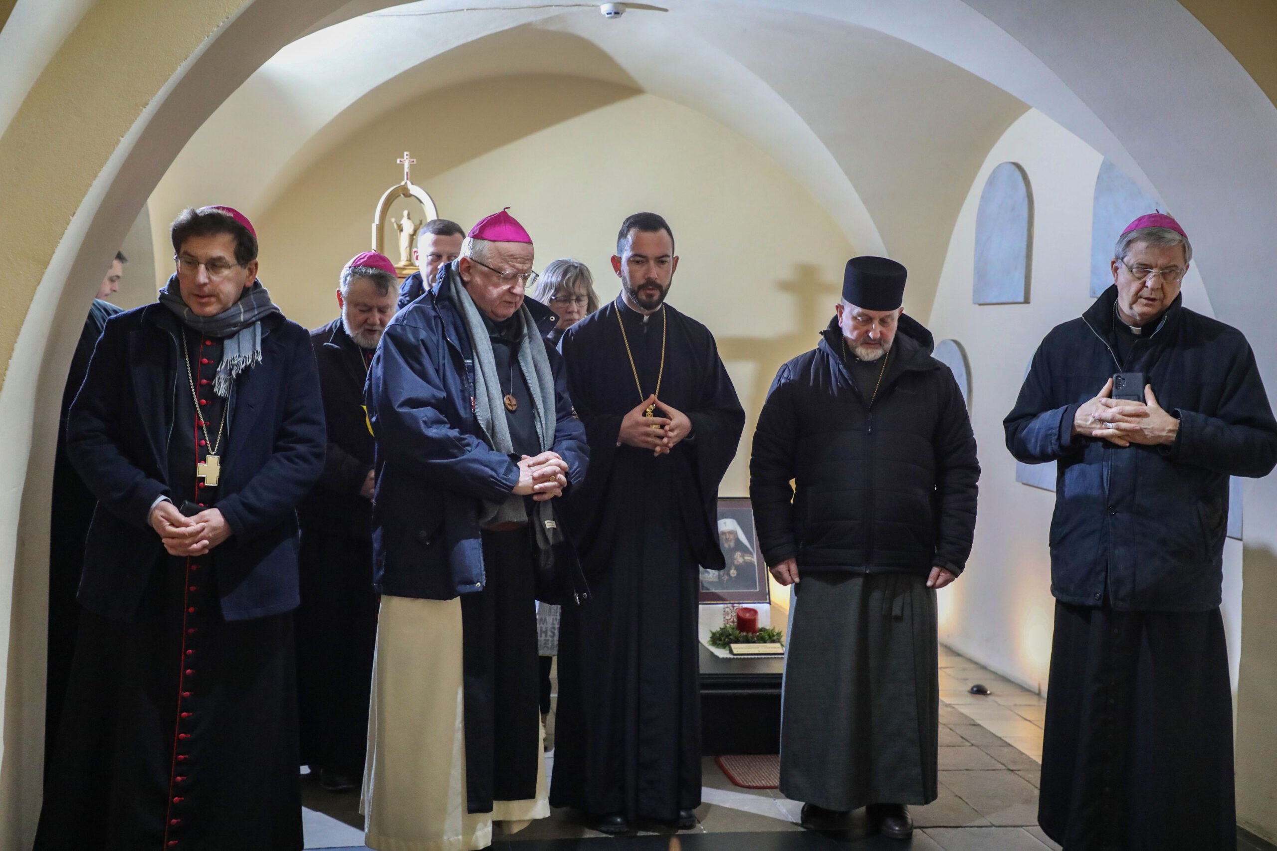 Після спільної молитви делегація помолилася в крипті Собору, де поховані останки провідників нашої Церкви.
