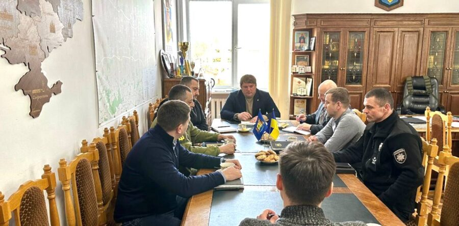 Під час наради обговорили ситуацію в районі станом на сьогодні: дотримання правопорядку, вимог комендантської години та сигналів повітряної тривоги жителями району.