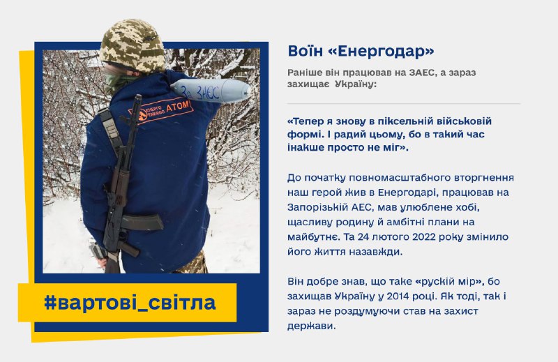 Повну історію нового героя нашої постійної рубрики «Вартові світла» читайте за посиланням 🌐: bit.ly/Pozyvnyi_Energodar