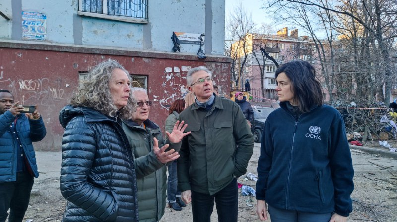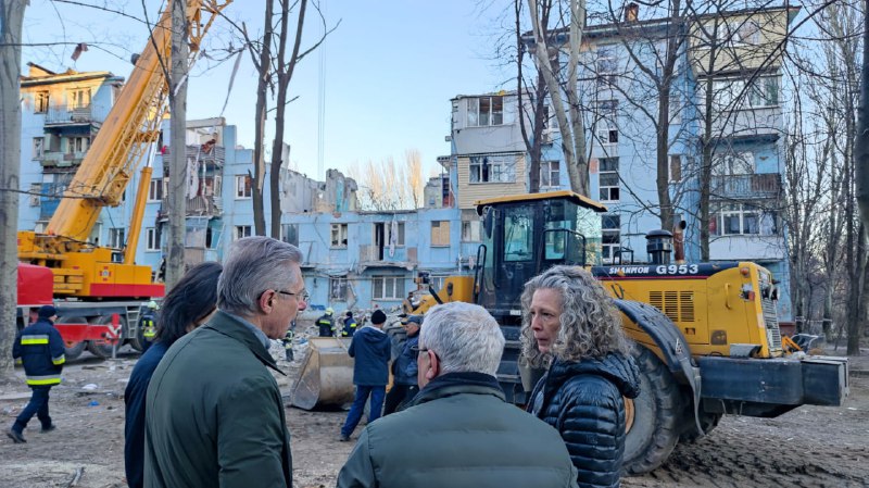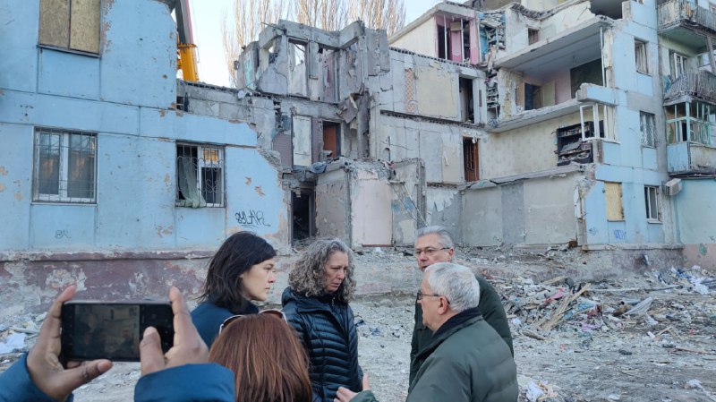 Делегація Організація Об’єднаних Націй на чолі з Постійною координаторкою системи ООН в Україні Деніз Браун спільно з заступником голови ЗОДА Віталієм Сиволапом, начальником Управління зовнішніх зносин та зовнішньоекономічної діяльності ОДА Артуром Бойком відвідали зруйнований житловий будинок внаслідок терористичної атаки російської федерації на Запоріжжя.