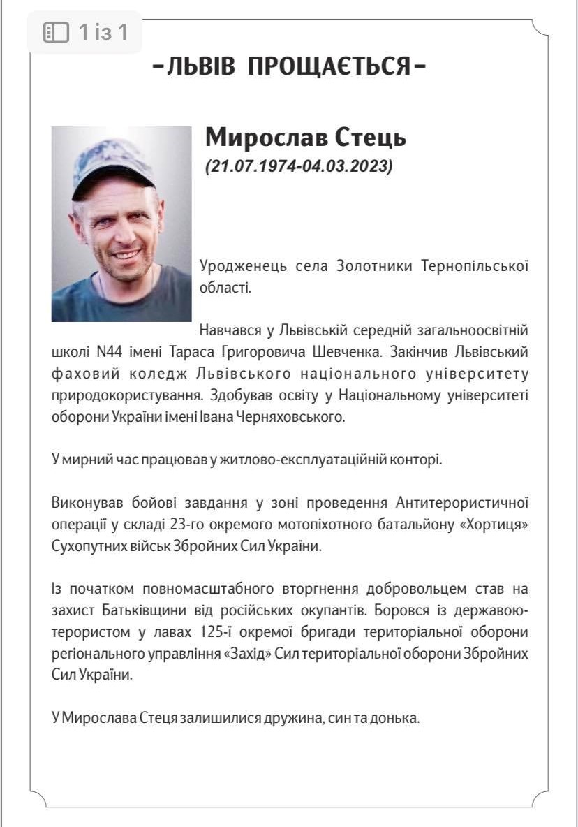 У вівторок, 7 березня 2023 року, у Гарнізонному храмі свв. апп. Петра та Павла, єпископ-помічник Львівської Архиєпархії владика Володимир звершив чин похорону трьох Героїв України: Анатолія Пилипенка, Владислава Вишатицького та Мирослава Стеця – рідного брата священника УГКЦ о. Василя Стеця. Архиєрею співслужили військові капелани та рідний брат загиблого Мирослава.