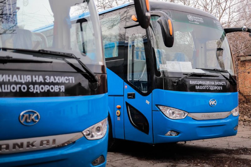 Полтавщина отримала два автобуси від ВООЗ. На цих авто мобільні бригади лікарів-імунологів виїжджатимуть у віддалені населені пункти у громадах для вакцинації населення проти інфекційних захворювань, а також COVID-19.