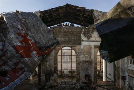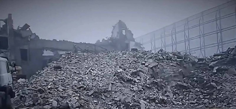 Зруйнований Маріупольський драматичний театр. російські окупанти спочатку скинули авіабомби, а потім почали демонтувати те, що залишилося від будівлі та прятати тіла загиблих людей від сторонніх очей.