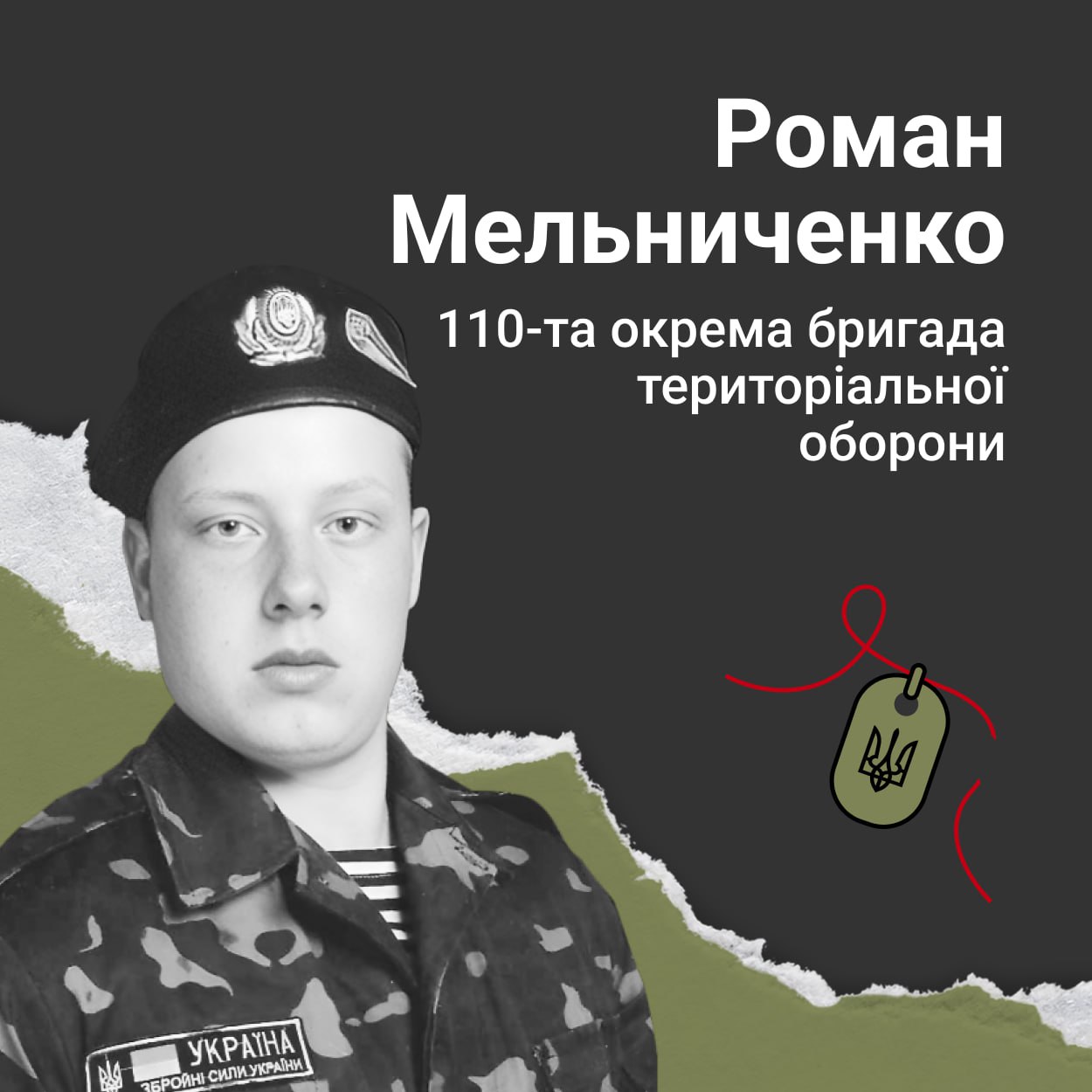 Солдат Роман Мельниченко загинув 1 травня 2022 року під час виконання бойового завдання поблизу села Зелене Поле на Донеччині. Захисник рятував пораненого побратима, однак сам загинув. Йому було 29 років.