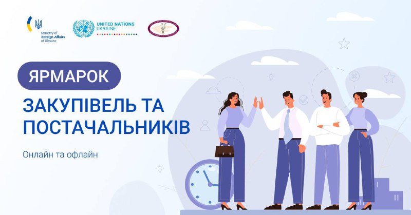 ООН в Україні у партнерстві з Міністерством закордонних справ та Київською торгово-промисловою палатою проводять Ярмарку закупівель та постачальників. Організація зацікавлена у розширенні співпраці з українськими бізнесами, та заохочує дізнатися більше про закупівельні процедури й діяльність агенцій ООН в Україні.