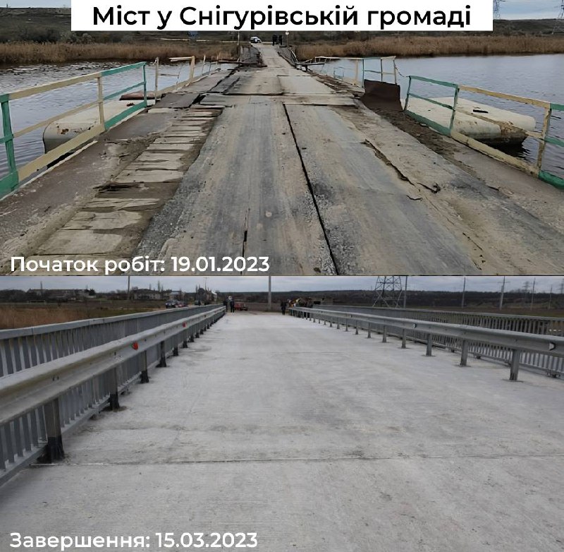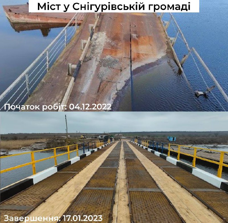 На зараз вже відбудовано шість мостів та забезпечено тимчасовий проїзд ще на шести.