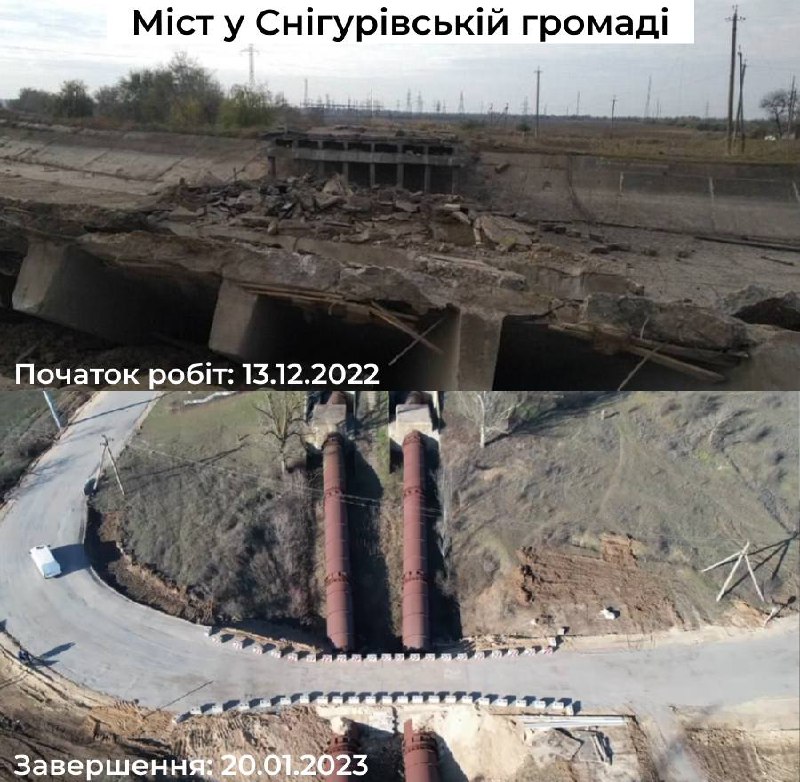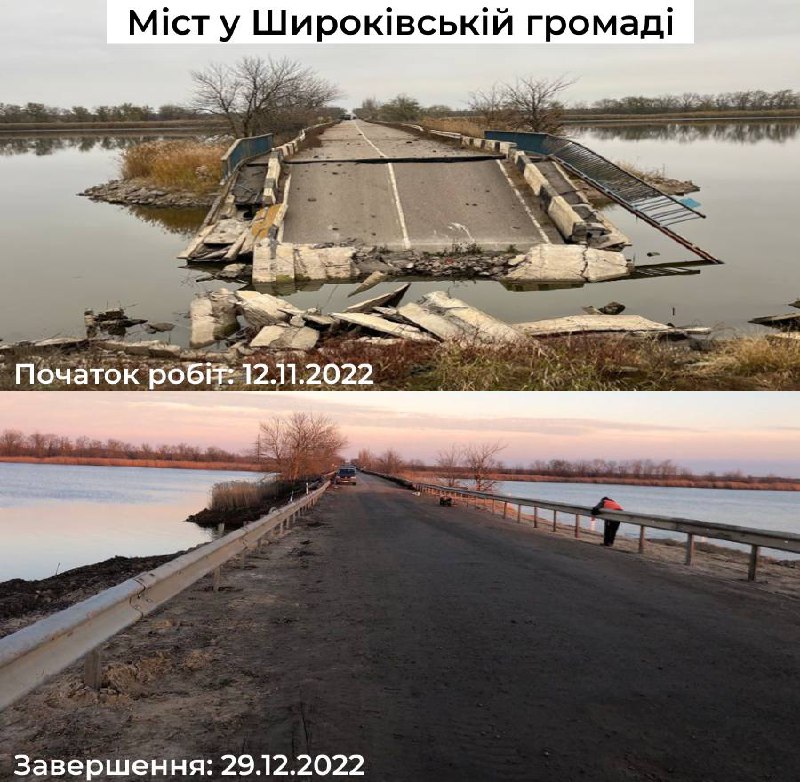 Ворог залишив після себе багато бід, особливо на деокупованих територіях. Тому роботи з відновлення велись у максимальному темпі, майже цілодобово та при будь-яких погодних умовах. Адже для всіх нас було важливо повернути нормальне життя там, де його хотіли відібрати. Брали участь у роботі військові та наші дорожні служби, за підтримки держави та донорів.