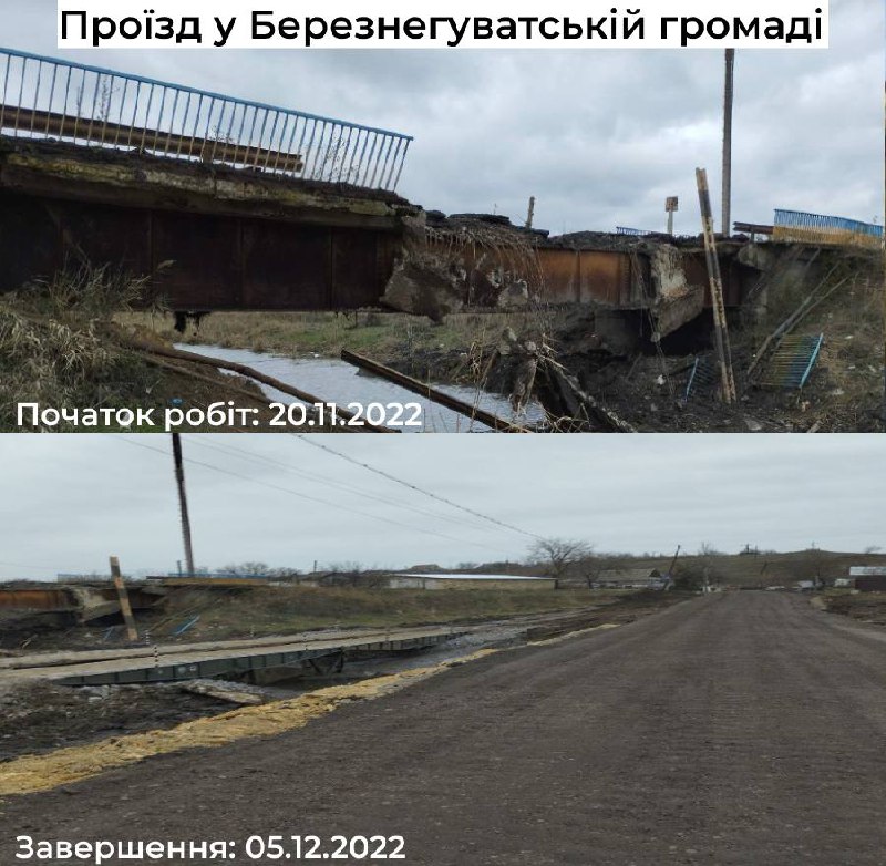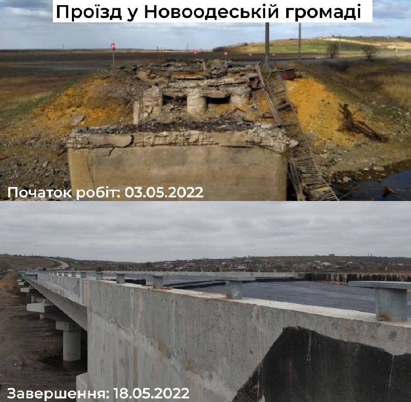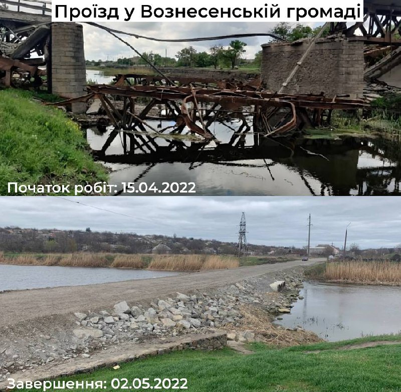 Все це стало можливо завдяки співпраці Миколаївської ОВА з Державною спеціальною службою транспорту, Службою автомобільних доріг у Миколаївській області, Управлінням каналів річки Інгулець та фандрейзинговою платформою United24.