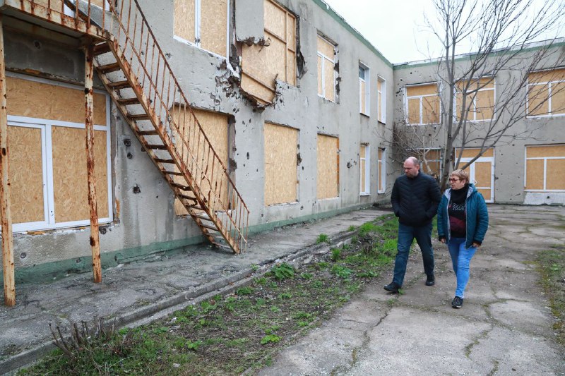 З робочим візитом начальник Запорізької обласної військової адміністрації відвідав місця регулярних “прильотів”, зокрема дитячий садок, на територію якого росіяни неодноразово цілили своїми ракетами. Вперше ворог ударив по території будівлі ще влітку. На щастя, тоді обійшлося без жертв, а збитки суттєві – вибиті вікна, пошкоджений дах.