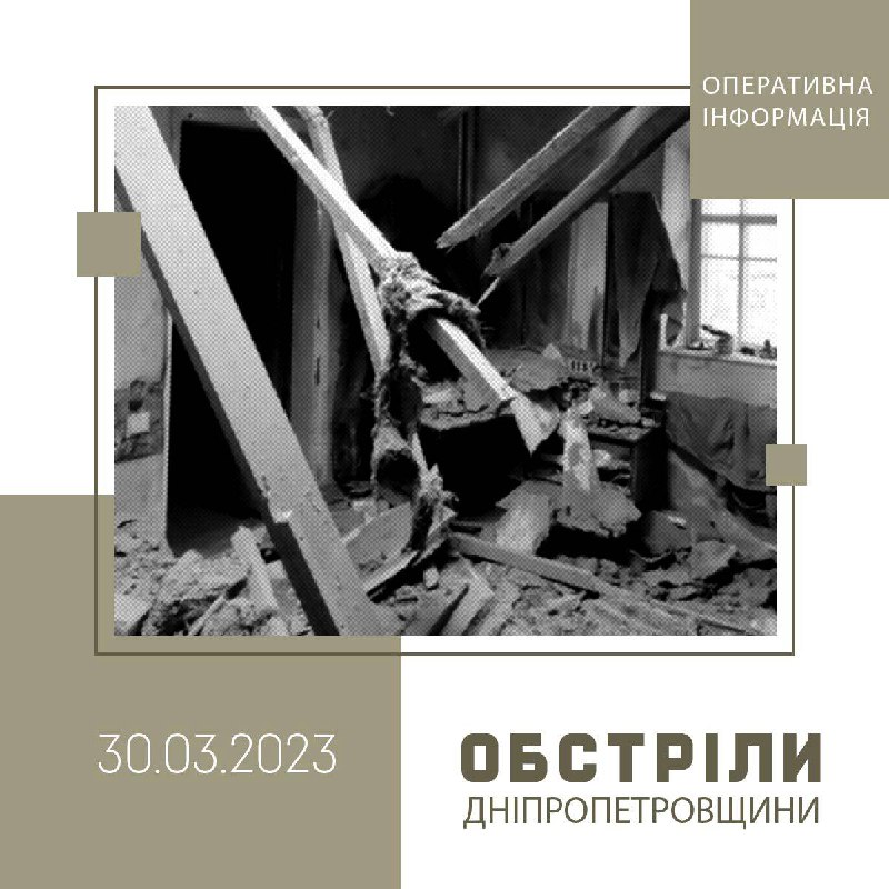 ▫️Протягом дня на Дніпропетровщині було тихо, а вже ввечері ворог вдарив по Нікопольщині 30.03.2023, Четвер | 19:12 Автор допису: Голова Дніпропетровської обласної військової адміністрації ▫️Протягом дня на Дніпропетровщині було тихо, а вже ввечері ворог вдарив по Нікопольщині. Обстріляв з артилерії Марганецьку громаду. ▫️Минулося без загиблих та постраждалих. ▫️Наслідки атаки уточнюються. ▫️Всім тихої ночі! Тримаймося! Джерело Друк / PDF