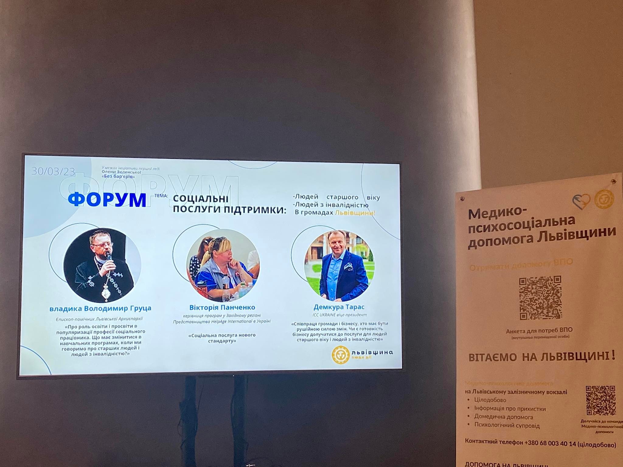У четвер 30 березня 2023 року, у приміщенні BankHotel, єпископ-помічник Львівської Архиєпархії владика Володимир взяв участь у панельній дискусії на тему: міжнародні партнери, соціально-відповідальний бізнес, готовність освітніх майданчиків в межах Форуму про соціальні послуги: – Людей старшого віку; – Людей з інвалідністю; – В громадах Львівщини.