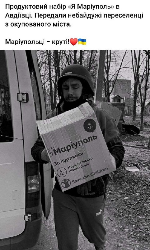 Це Авдіївка. Один з найгарячіших напрямків фронту. Маріупольці, чиє місто знаходиться в окупації, передали гуманітарну допомогу мирним Авдіївці! 3.04.2023, Понеділок | 7:17 Автор допису: Маріупільська міська рада Це Авдіївка. Один з найгарячіших напрямків фронту. Маріупольці, чиє місто знаходиться в окупації, передали гуманітарну допомогу мирним Авдіївці! Відчуйте силу солідарності! ✊На фото – маріупольський журналіст Артем Попов. Джерело Друк / PDF