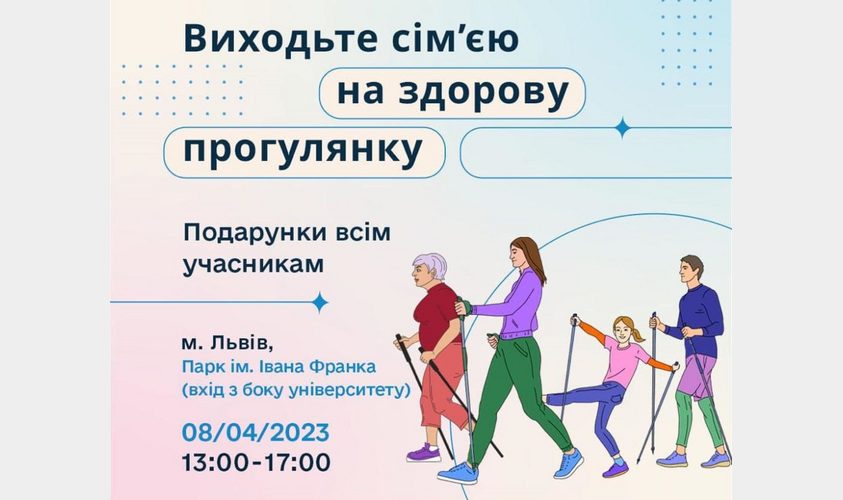 Мешканців та гостей Львова запрошують відвідати Здорову прогулянку у парку Івана Франка 8 квітня 2023 року Львівський обласний центр контролю та профілактики хворіб Міністерства охорони здоров’я України за підтримки управління молоді та спорту та департаменту охорони здоров’я реалізовує всеукраїнську акцію «Здорова прогулянка» у парку ім. Івана Франка. В межах заходу проводитимуть заняття зі скандинавської ходьби спільно з інструктором у парку за спеціальним маршрутом з 13:00 до 17:00. Для того, аби взяти участь у прогулянці, потрібно зареєструватися за посиланням https://forms.gle/ZkHmHaYPMncfi3zH7