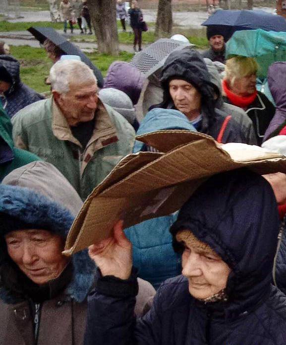 Життя у місті перетворилося на справжнє знущання з людей. Маріупольці досі вимушені отримувати подачки у вигляді гарячої каші та хліба. Проте, щоб отримати навіть це необхідно кілька годин вистояти у черзі. Доведені до відчаю люди терплять таку неповагу. Бо треба виживати….