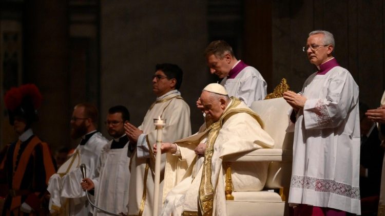 Увечері, 8 квітня 2023 р., Папа Франциск очолив в базиліці Святого Петра у Ватикані Святу Месу Пасхального чування, під час якої уділив таїнства християнського втаємничення вісьмом дорослим катехуменам, троє з яких з Албанії, двоє зі США та по одному з Італії, Нігерії та Венесуели. Після біблійних читань він виголосив проповідь: