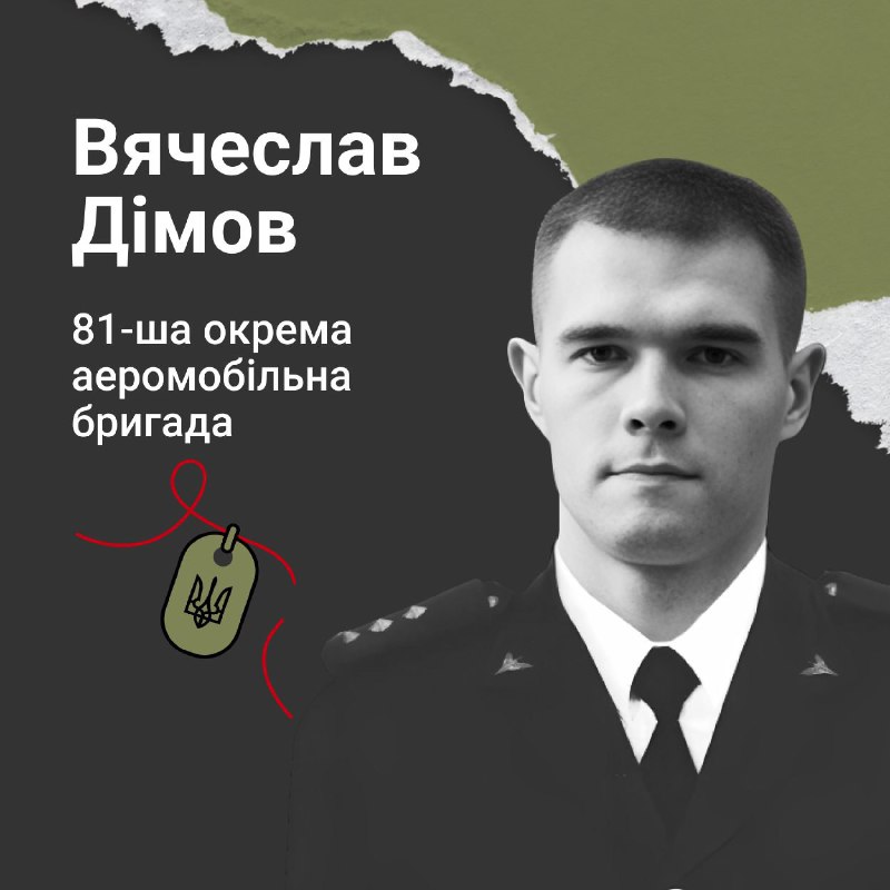 Старший лейтенант Вячеслав Дімов загинув 16 квітня 2022 року під час виконання бойового завдання у Запорізькій області. Офіцер підірвався на ворожій протитанковій міні. Йому було 29 років.